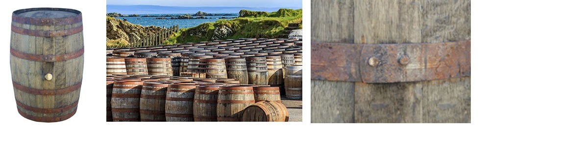 Äußerlich erscheinen Whiskyfässer rustikaler und gealtert, mit dunklem Holz und einer charakteristischen Rostpatina auf den Fassreifen. Diese charmante Optik entsteht durch ihre lange Verwendungsdauer: Whiskyfässer werden oft über Jahrzehnte hinweg genutzt und können zuvor mit anderen Spirituosen, Weinen oder Sherry belegt worden sein, um zusätzliche Aromen zu übertragen. Auch die robuste Handhabung trägt zu ihrem markanten Erscheinungsbild bei.